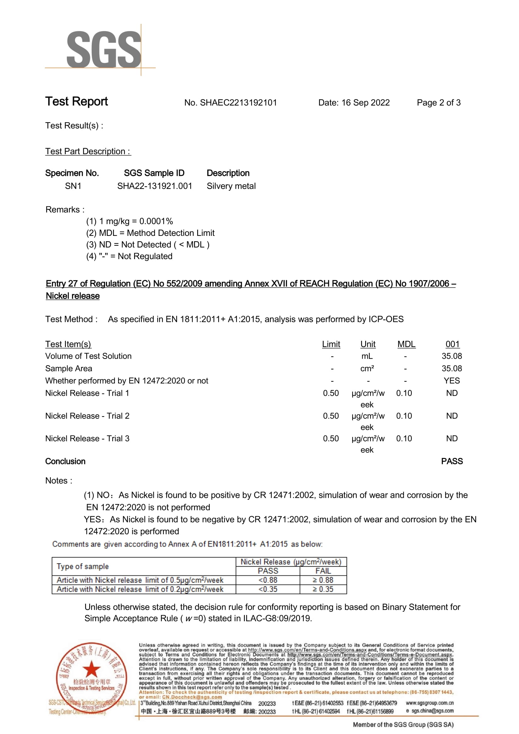 SGS certification