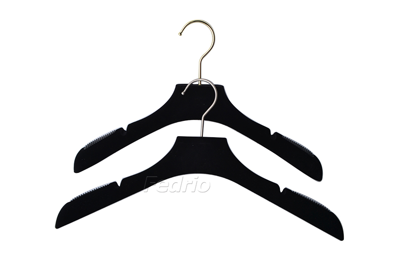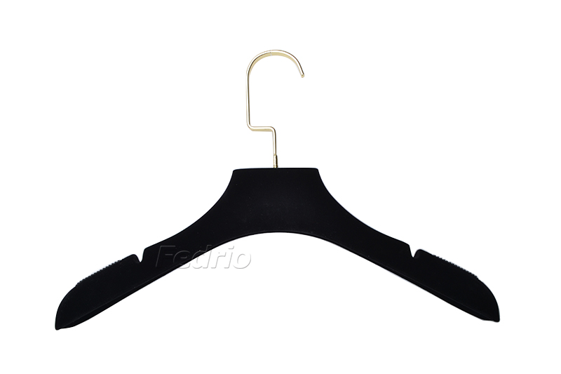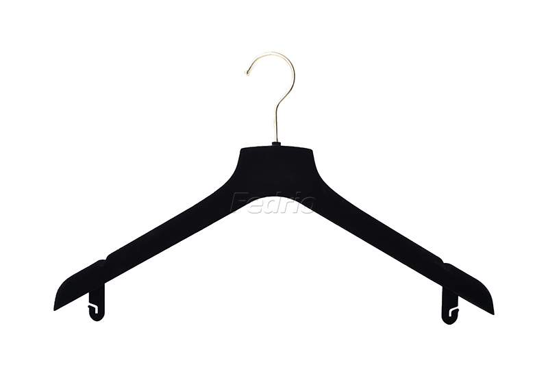 We supply custom or in-stock flocked velvet hangers with or without logos for clothing, skirts, coats, wedding dress, suits, pants, trousers, scarves, etc. There are many types of velvet hangers for you to choose here. Such as velvet coat hangers, and velvet hangers with clips or crossbars. At the same time, the size and color can also be customized. Such as white, beige, black, grey, pink, blue, purple, etc.